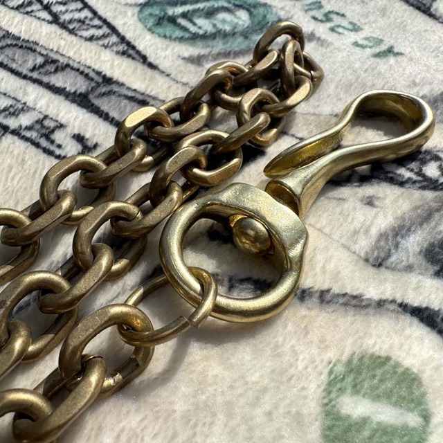 真鍮ならではの経年変化を楽しめる 無垢の真鍮製、ソリッドブラスのウォレットチェーン long 50cm、SOLID BRASS WALLET CHAIN