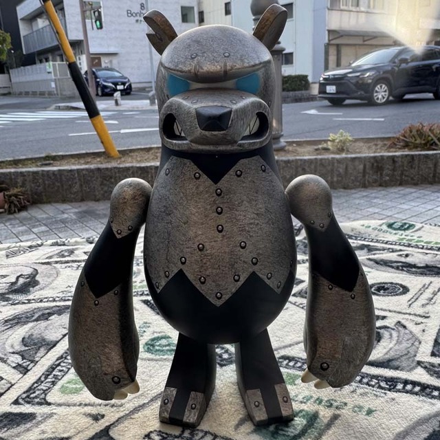 日本人アーティスト toumaデザインのUsed 8インチ ナックルベアのIRON Blue Eye 2004年発売のKNUCKLE BEARシリーズの第五弾、個人的にはメカゴジラを連想しますが 設定としてはKINGがナックルベアを倒すために作らせたナックルベアを模したロボットという設定のようで、どこぞの人型決戦兵器のように暴走しちゃうです。Qeeでお馴染みの香港のToy2R社製 2000年代に沸き起こったアートトイ、アートフィギュア界を牽引した日本のアーティスト toumaの代表的なデザインナックル・ベア! ゼロ年代に盛り上がった、香港フィギュア、デザイナーズフィギュア、アートフィギュア界にLowbrow artやグラフィックデザイナーなど色んなクリエーターが多数参入し、この頃のフィギュア大好きでした!! 厳密には、樹脂、PVC製でソフビとは異なりますが、ソフビを含めたアメリカン雑貨、フィギュア、ポップカルチャー好きの方に、素敵なインテリア効果もあるかと思います。 中古品という特性上、ノークレーム、ノーリターンでご検討下さい。気になる点があればコンタクトフォームよりお問い合わせ下さい。 8inch:H210 x W 160x D 95mm/¥4800(税込)
