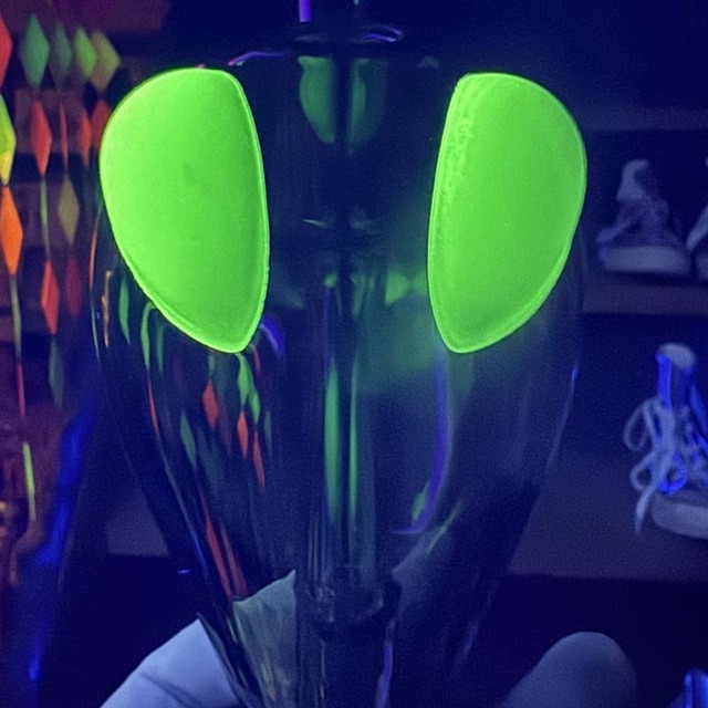 暗闇で怪しく目が光る蓄光仕様のエイリアン、宇宙人デザインの ガラスボング ヘンパー 、アートガラスなボング、HEMPER ALIEN GLASS BONG Art Glass Bong、Glow in the dark