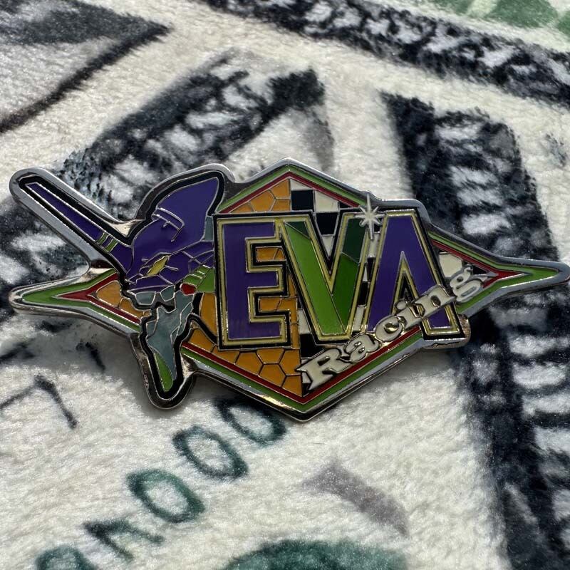 2010年にアニメ『ヱヴァンゲリヲン新劇場版』とのプロモーションタイアップとして発足したエヴァンゲリオンレーシング(EVANGELION RACING)は、四輪および二輪のモータースポーツに参戦との事で、こちらのピンバッジは、EVANGELION RACINGの初期物でもあります。