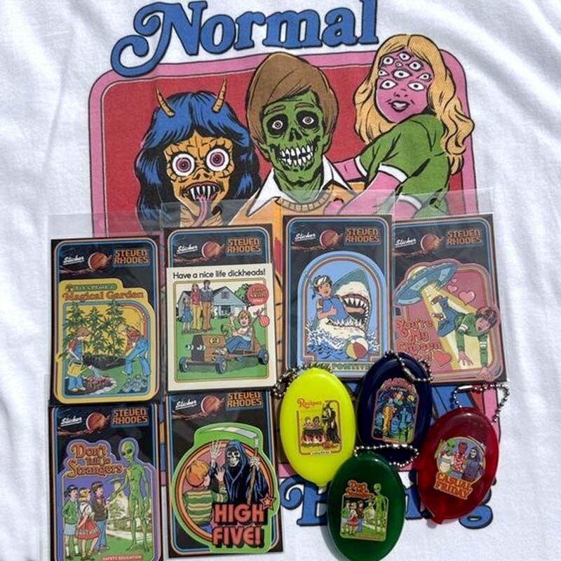 スティーブン・ローズは、70年代から80年代の子供向けのアクティビティブック、活動本などから受けたビンテージ、レトロな雰囲気のインスピレーションにダークファンタジー要素を追加した皮肉が効いたブラックユーモア溢れる作品を多く世に出し続けるアーティスト。
