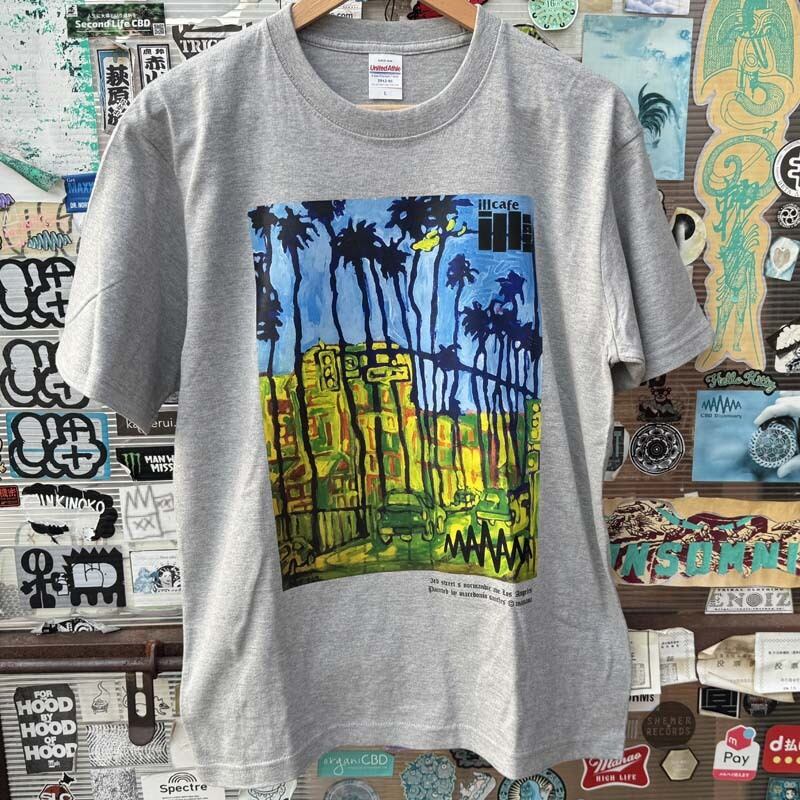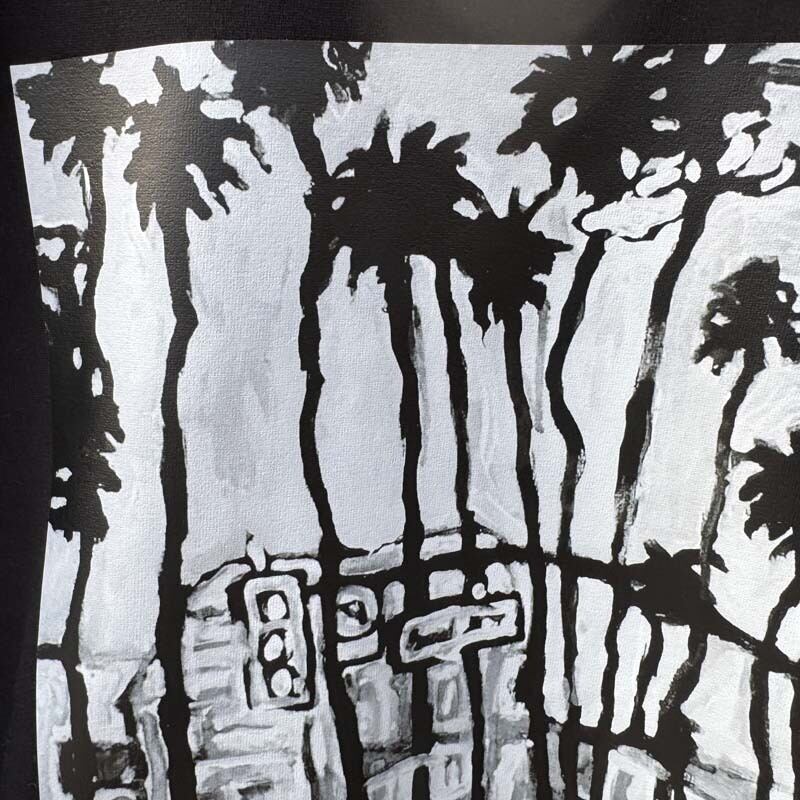 古くからのお付き合い LA在住の画家 macedonio sanches が描いた LAの風景を no name にDTFプリントで再現して頂きました!