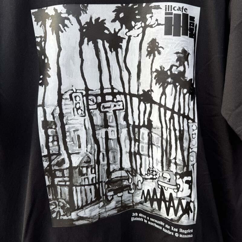 昨年リリースした ロンTやコーチJKTのリリースではバックプリントで採用したロスの風景のアートワークを今回のS/S Teeではフロントに入れてみました!インパクト抜群なロスの風景をフロントプリントでお楽しみ頂けるデザインなんで、ロンTeeをご購入頂いた方も是非!