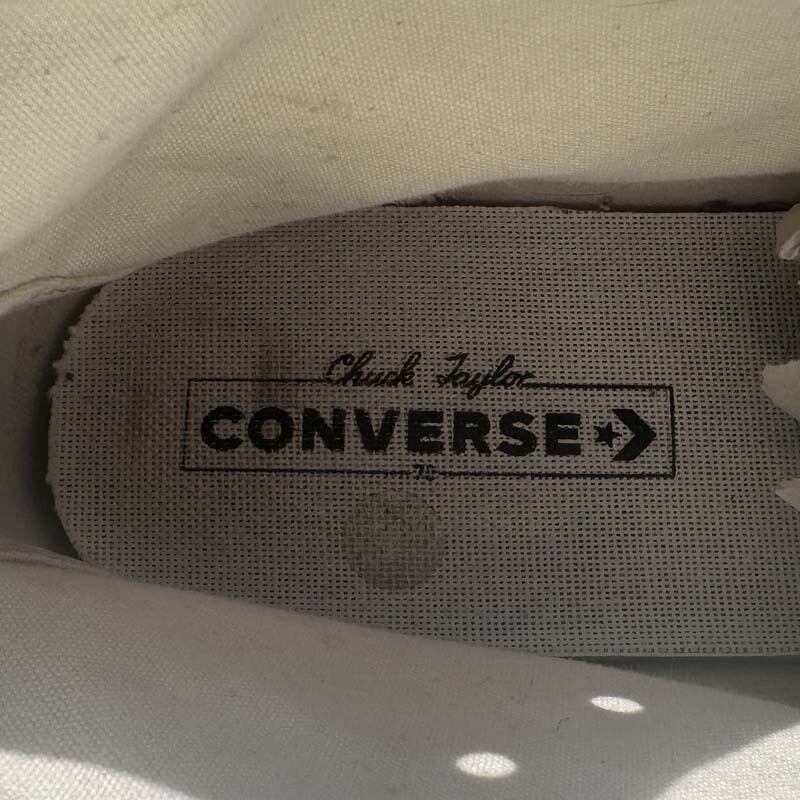 ビンテージ好き、スニーカー好きの方には説明不要だと思いますが、日本未発売のCT70 HIは、オールスター、チャックテイラーの1960年後期~70年代初期の復刻モデルで、CONVERSE ALL STAR Chuck Taylorに三ツ星のヒールパッチ、黒星、黒文字のレザー素材のアンクルパッチ、厚みがありハリのある素材感、ツヤのある仕上がりのラバートゥ、サイドステッチ、クッション性の高さなど、Vintageのディティールを復活させた人気モデルとなりますが、コンバースジャパンから国内流通が禁止されてるレアなモデルとなっています。