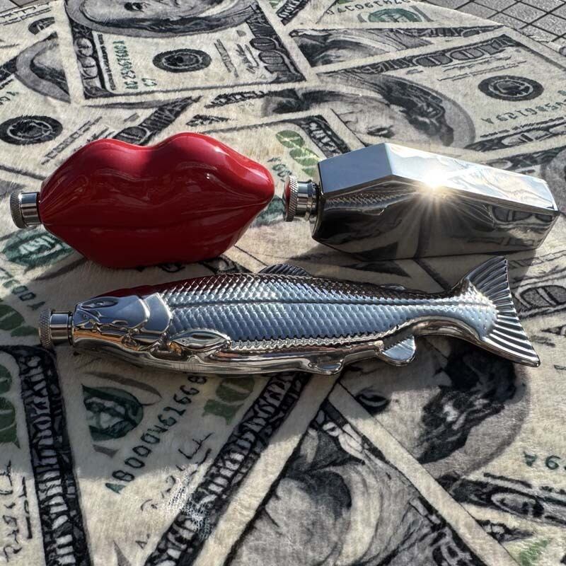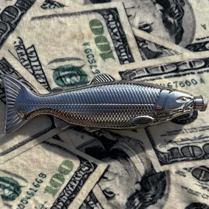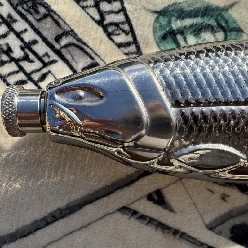 魚の形をした hip flask、ヒップフラスコ、skittles、スキットル、ウイスキー、テキーラ