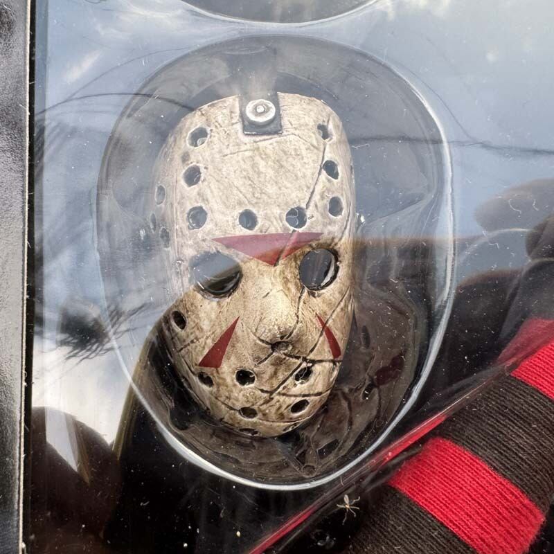 ロゴ入のフィギュアスタンド、フレディの帽子、ジェイソンのマスクの付属品が付きます。