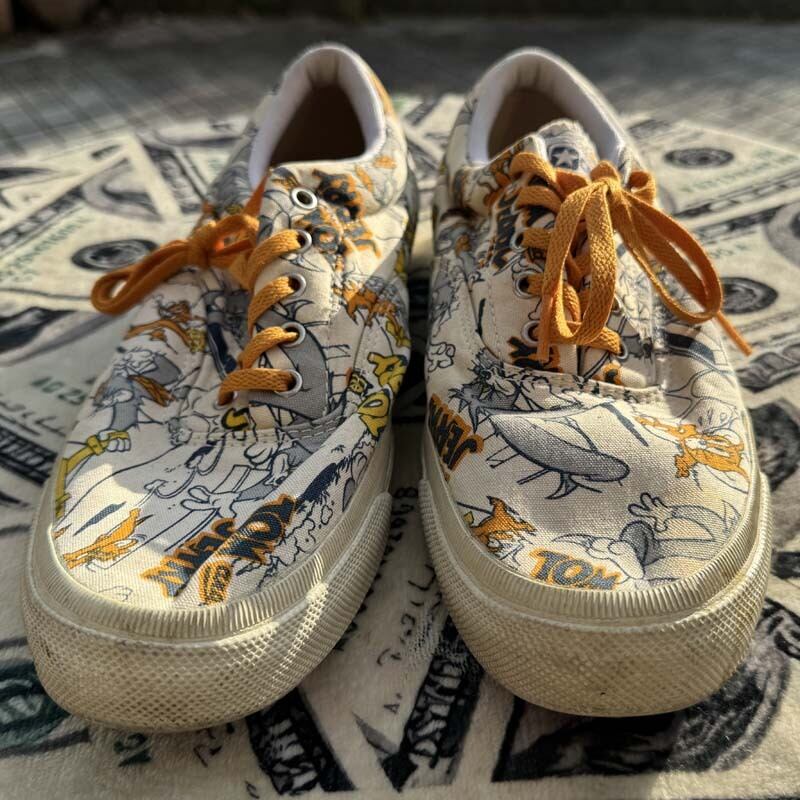 老若男女問わず人気のアメリカのアニメ トムとジェリー のデザインがアッパー、インナーにふんだんにプリントされた1足となっています。