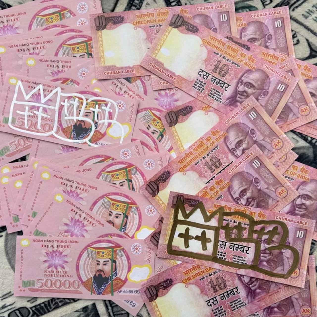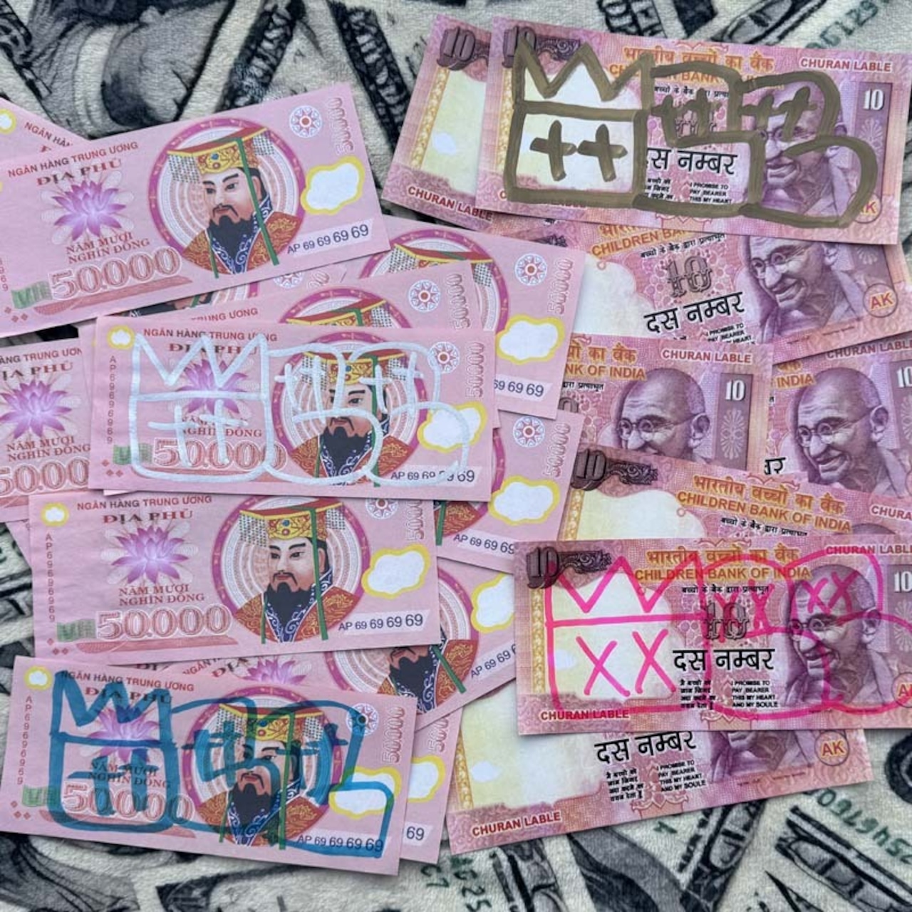 人生ゲームやドンジャラに使ってみたり、お買い物ごっこ、ゴムでまるめたり、細いストローを作ってギャングごっこw、お札にグラフィティを書いて配ったり、貼ったり、ベトナム、アジア好き、お金コレクターのコレクションに!色んな方法で楽しんでみて下さい!