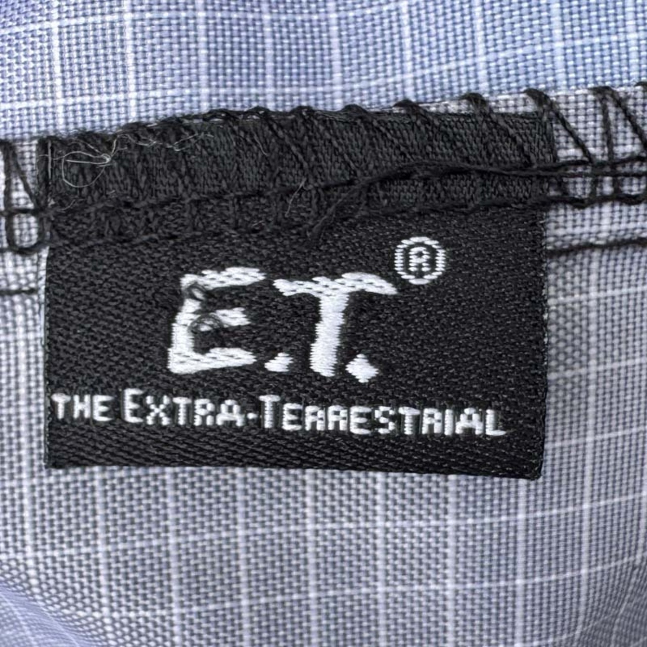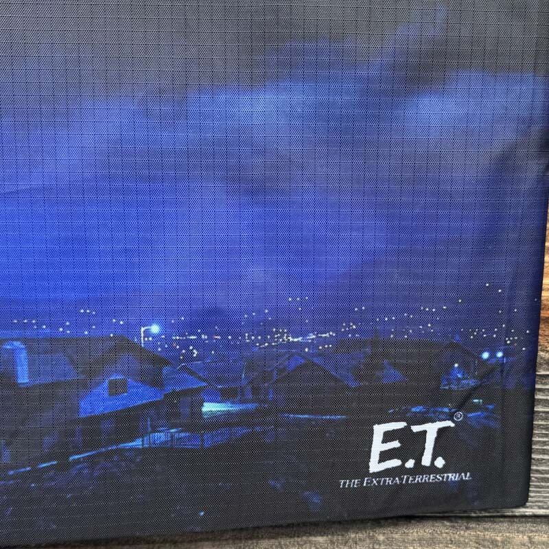 夜景を背景に花の鉢を持ったETサイド、夜空に浮かぶSpaceship、UFOサイドと両面 E.T.の映画のワンシーンがデジタルプリントで入る仕上がりです。