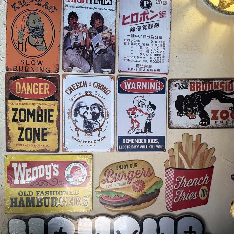 お店、カフェ、バー、お部屋、ガレージ等のウォールデコ、インテリアに!メタル製の看板のご紹介です。