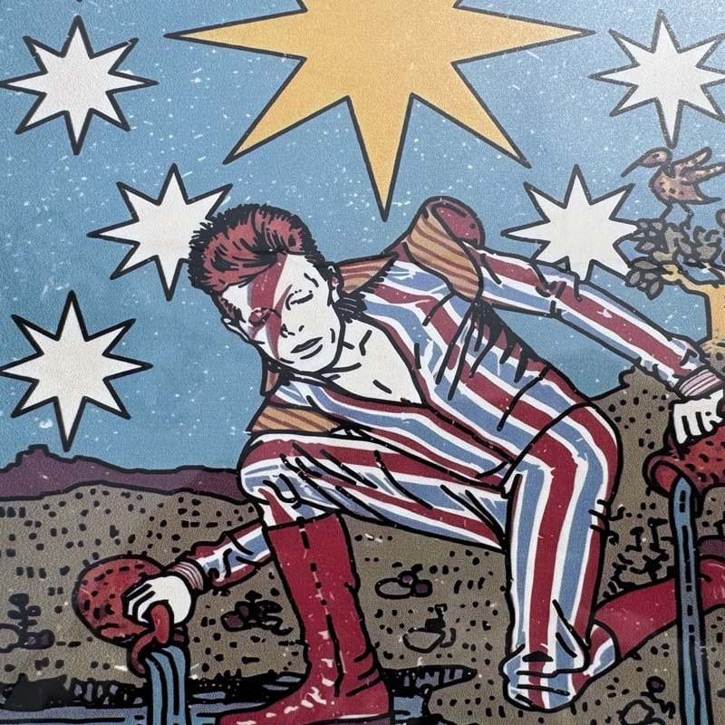 こちらではタロットカードのThe Star(星)をモチーフにロックスターのDavid Bowie(デビットボウイ)をサンプリングしたデザインに!ちなみに、タロットカードの星は希望、未来志向、アイデアをさすみたいで、ポップカルチャーと神秘主義を融合させたデザインに仕上がってます。