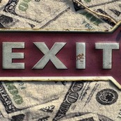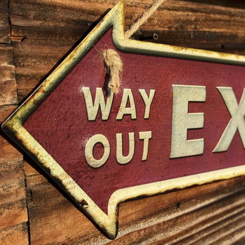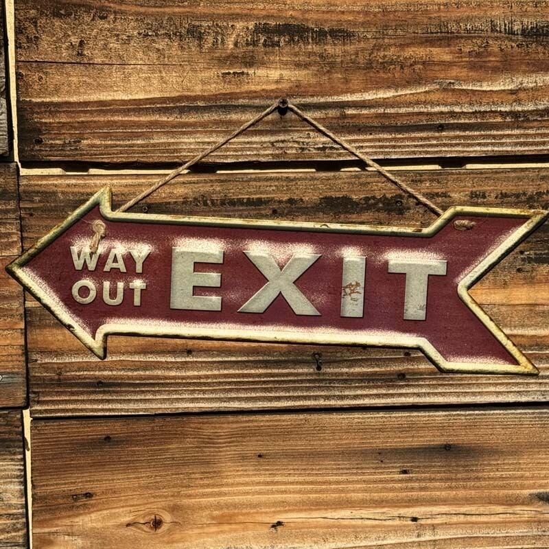 赤い矢印型に WAY OUT/EXIT デザインとなっています。WAY OUT、EXIT どちらも出口を意味します。