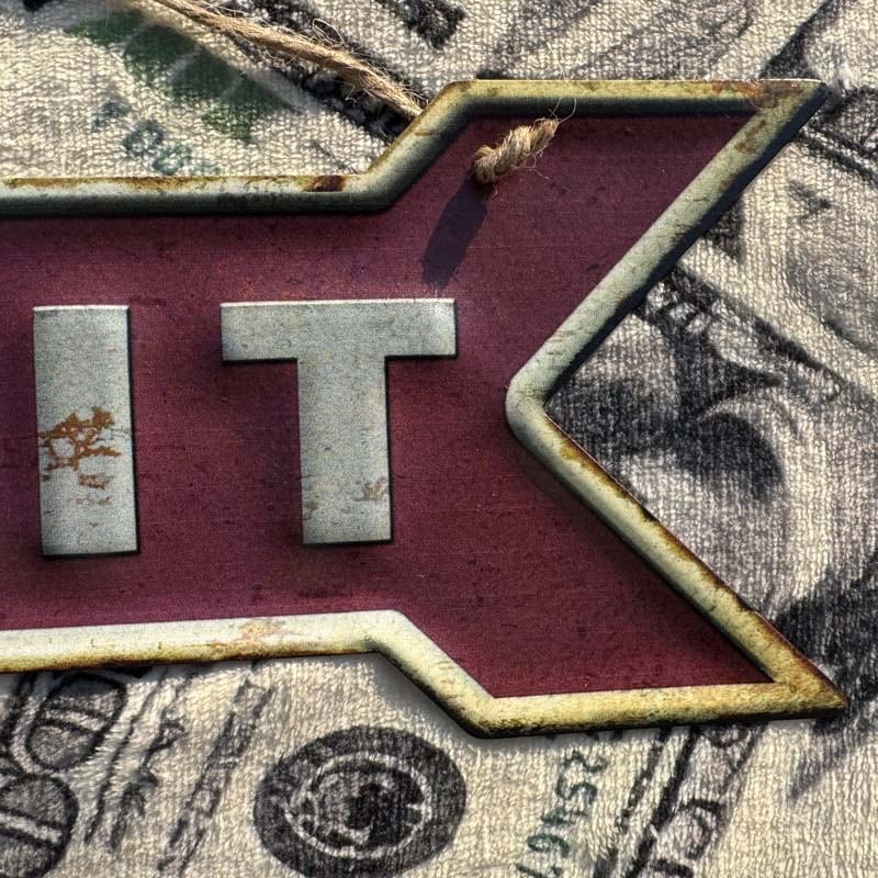 矢印の輪郭、WAY OUT/EXIT は立体感の凹凸を楽しめるエンボス加工となっています。Used加工が施されていますが 新品なんで 錆などを気になる事無く、ビンテージ、レトロな雰囲気をお楽しみ頂けると思います!アメリカンビンテージ、アメリカンレトロな仕上がりのデザインをお楽しみ下さい!