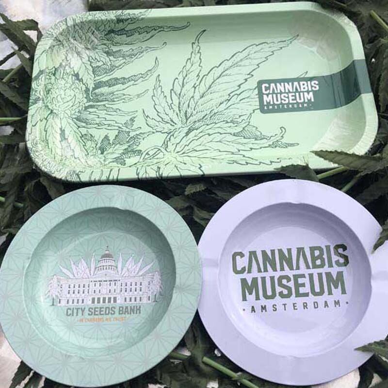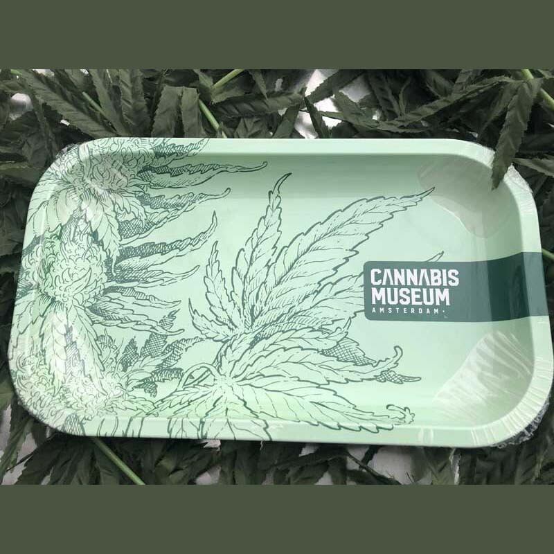美しいCannabisのアートワークとCannabis Museum Amsterdamのロゴが入ったローリングトレイ!