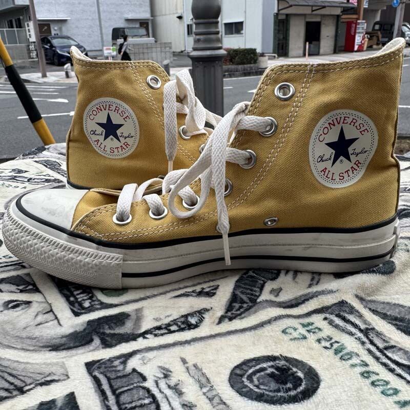 アメカジ、古着の大定番のコンバース オールスターのハイカット、レアなカラーのウォッシュドキャンバス ゴールドとなります。