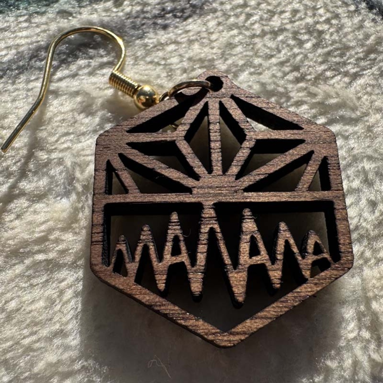 こちらは天然木ウォールナット材を使用した木製のピアスで、ナチュラルな風合いを楽しめる仕上がりとなっています。