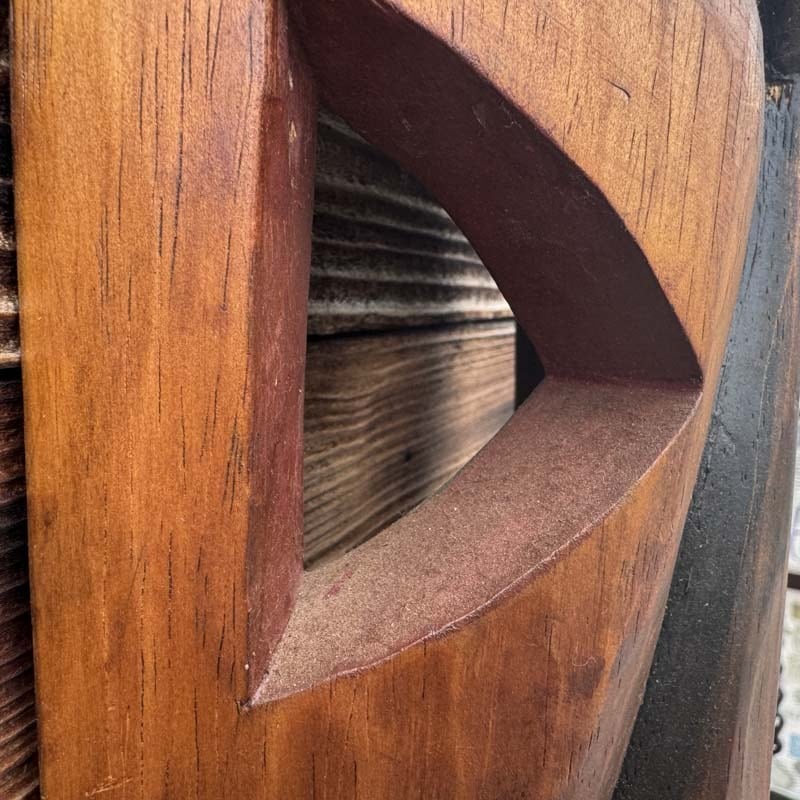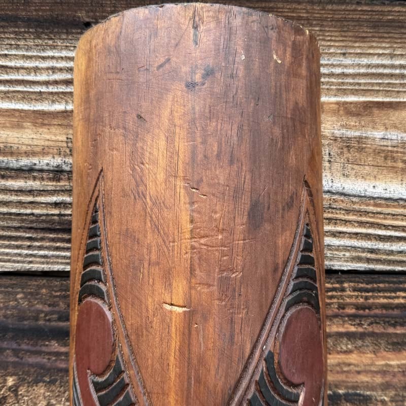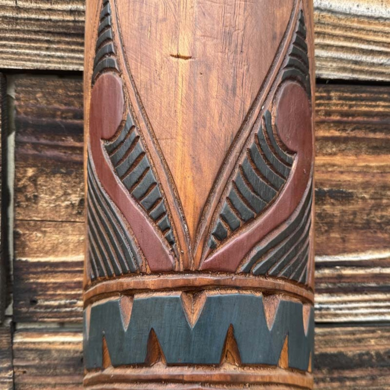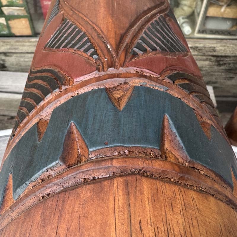 目と口がくり抜かれた いかついティキの表情も力強く存在感抜群ですが、tikiの顔の上下のトライバルな模様もとっても素敵な仕上がりですね!