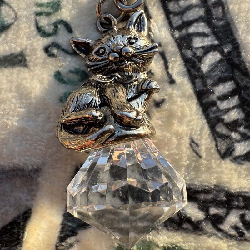 猫とダイアモンドモチーフのレトロでゴージャスなキーホルダーのご紹介です。