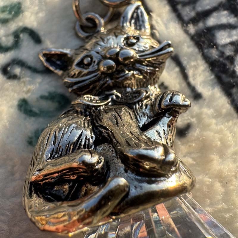 猫の部分はピューター製、ダイアモンドの部分はラインストーン製でレトロ感、アンティーク感を楽しんで貰えると思います。