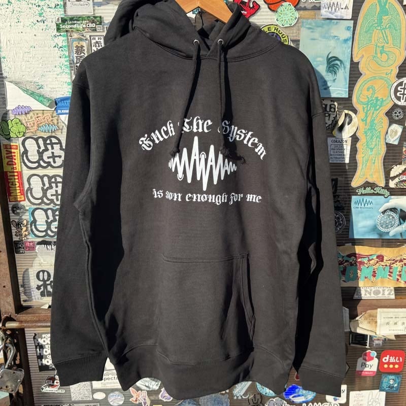 Fuck The System / manana is soon enough for meと反権力かつ マニャーナからの熱く優しいメッセージを込めたパーカーが完成!!最近 マニャアパレルの制作をお願いしている No NameさんのDTFプリントで制作。