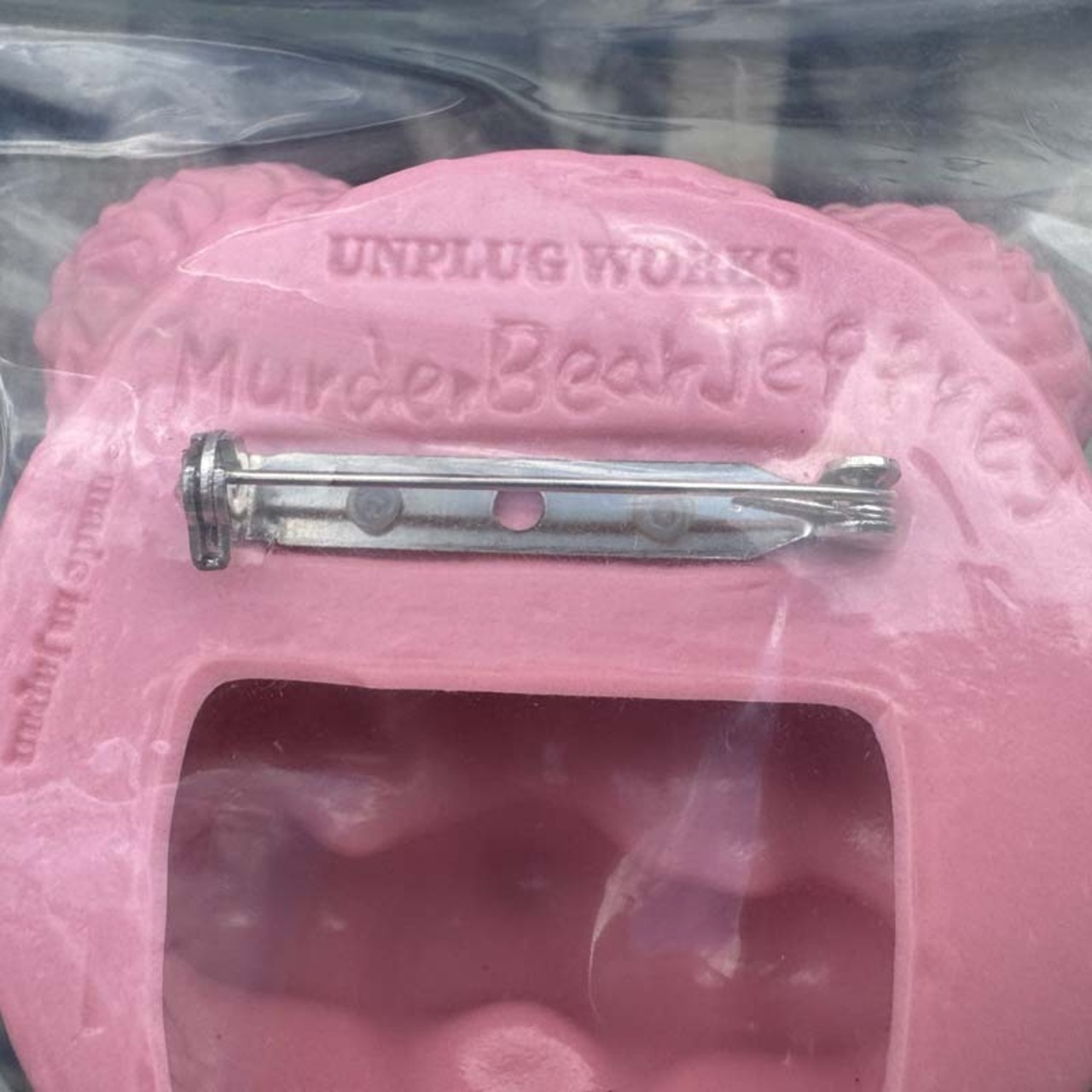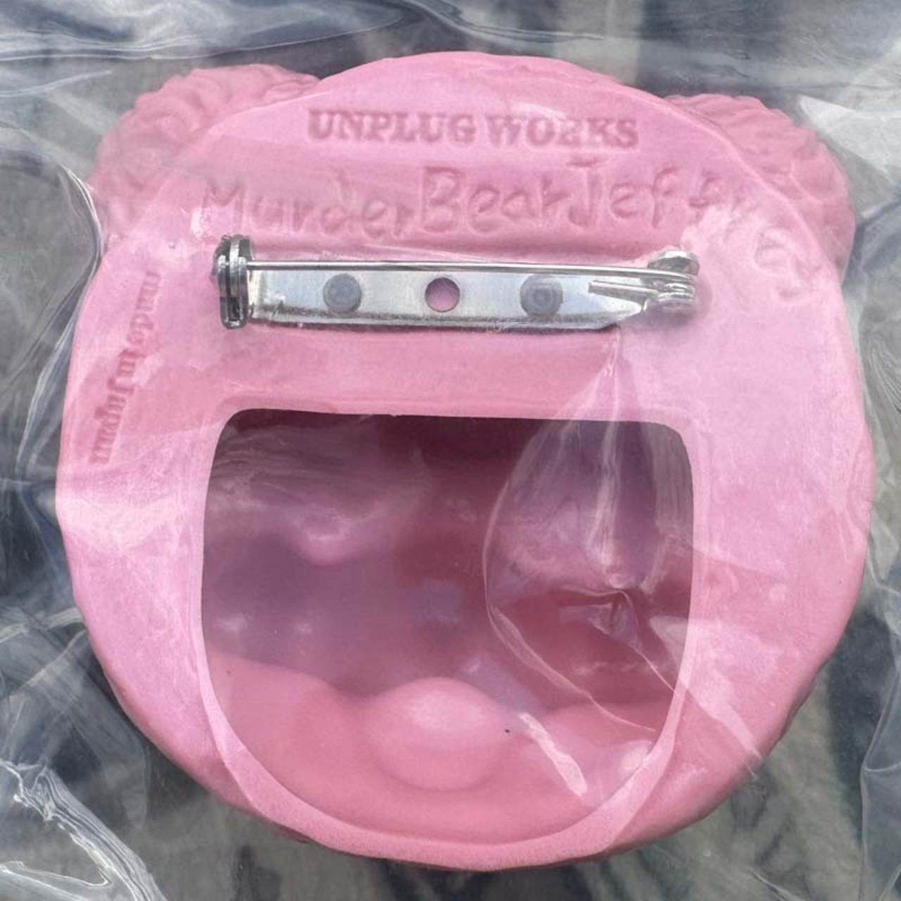 ソフビ製の殺人鬼バッジ マーダーベアーのジェフリー君 シリアルキラー ソフビバッジ、アンプラグワークス、Unplug Works serial killer Murder Bear Jeffrey、 ジェフリー・ダーマーを食べちゃた熊