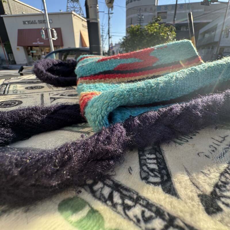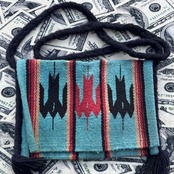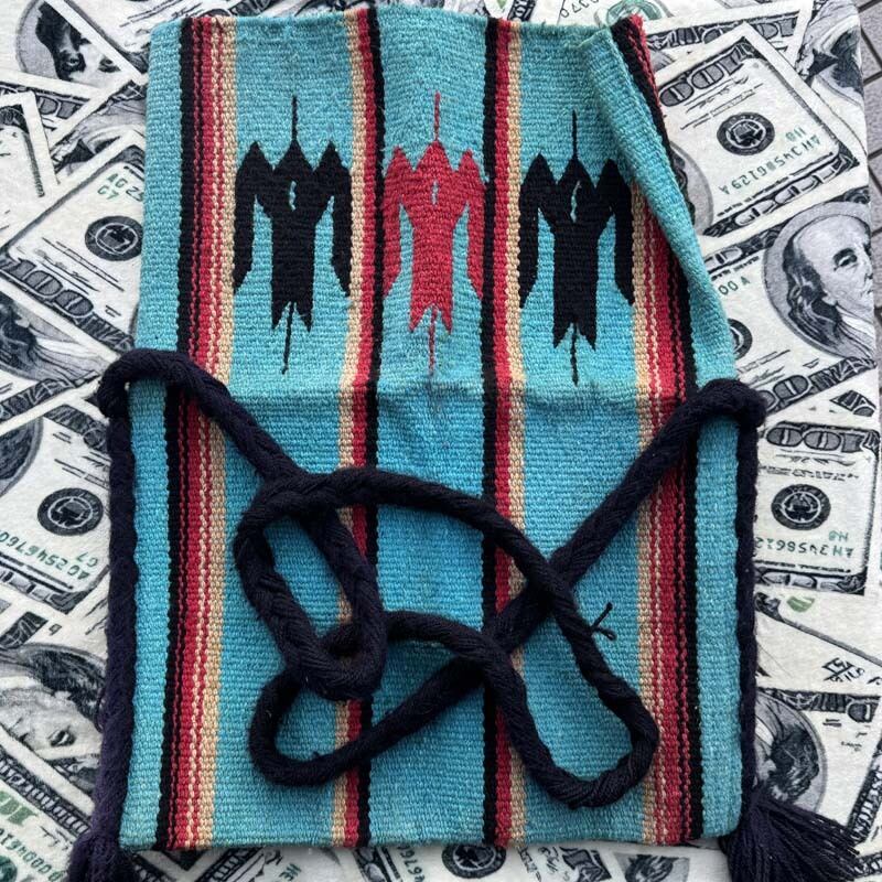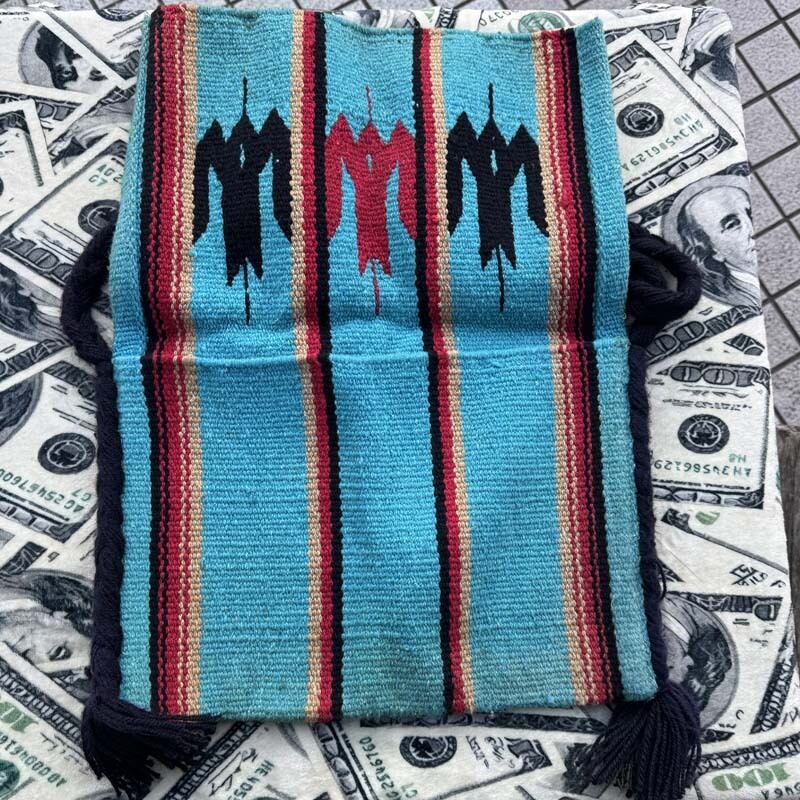 アメリカで購入した、チマヨ系のサンダーバード柄が織り込まれた生地で製作されたバックです。