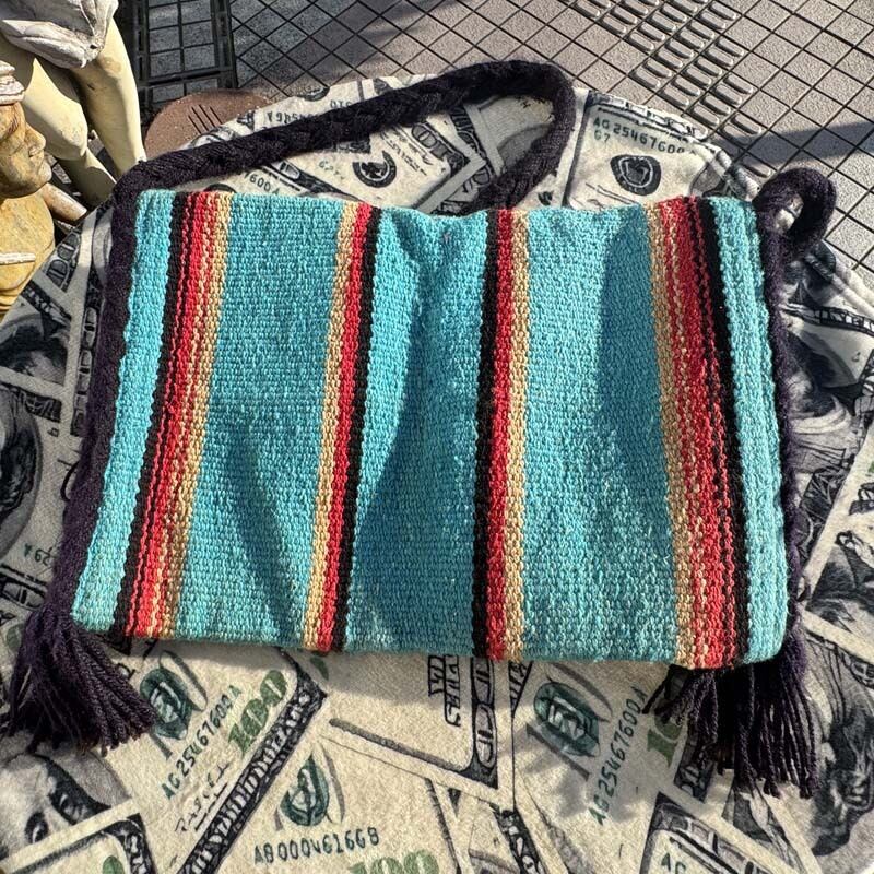 斜め掛けでも問題無しの長めの紐は毛糸の紐を編み込んだ作りで、程良く 癖の強いアイテムなので、Vintage、古着好き、民族調な着こなしが好きな方などに、使って貰いたいような仕上がりです。