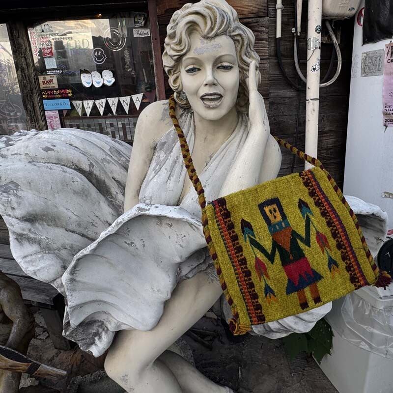 絨毯みたいなタペテの素材感もイイ雰囲気で、ネイティブ系のアートワークも着こなしのアクセントになると思います!