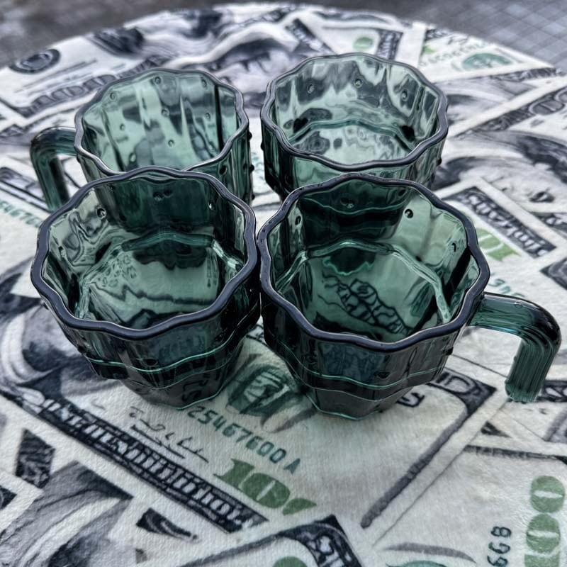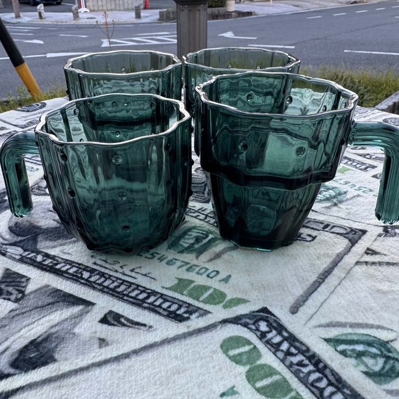 クリアグリーンのガラス製のグラス4個セットのご紹介です!