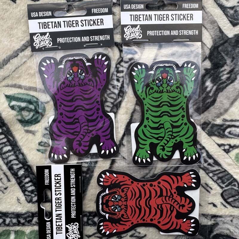 そんなチベタンタイガーをモチーフとしたステッカーなんで、身に着けて災難から守ってくれるお守り効果を!ご利益だけで無く、アジアンポップな可愛いデザインはファッションのアクセントとしても◎!スマホや冷蔵庫、車なんかにも使えるイイサイズ!