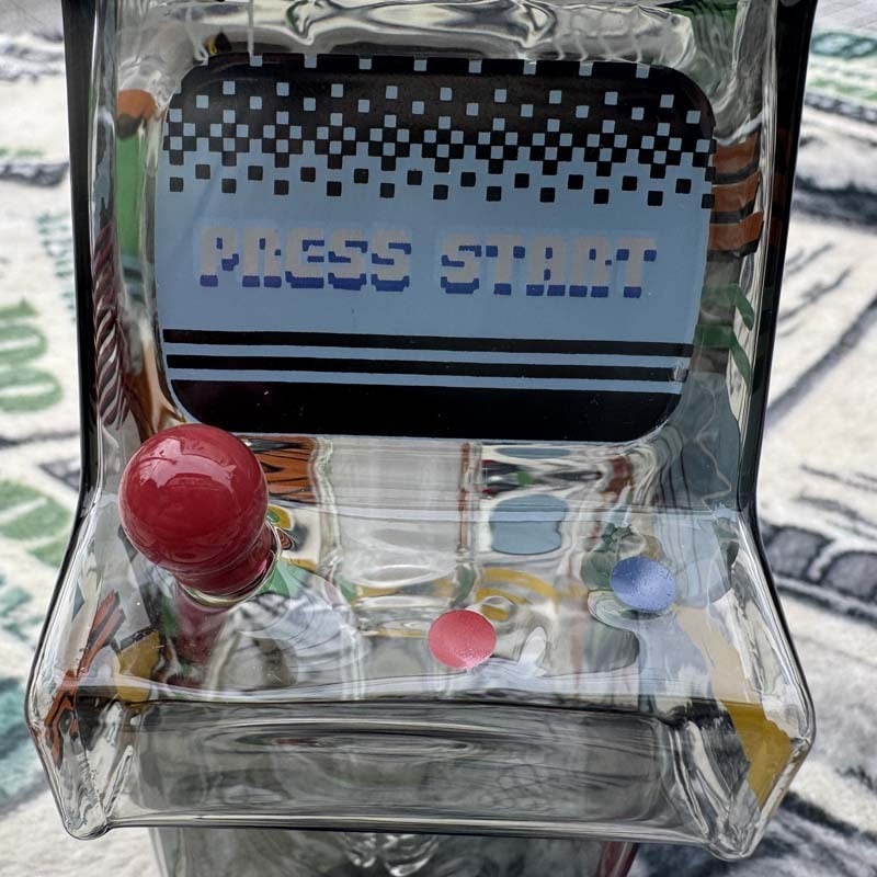 このお値段ならいざとなったらボングとしても使えるアートガラスなフィギュアとして飾って置くのもありかと思います!ジョイスティックやボタンまで忠実に表現されてます!8bitなグラフィックデザインも最高ですよね!