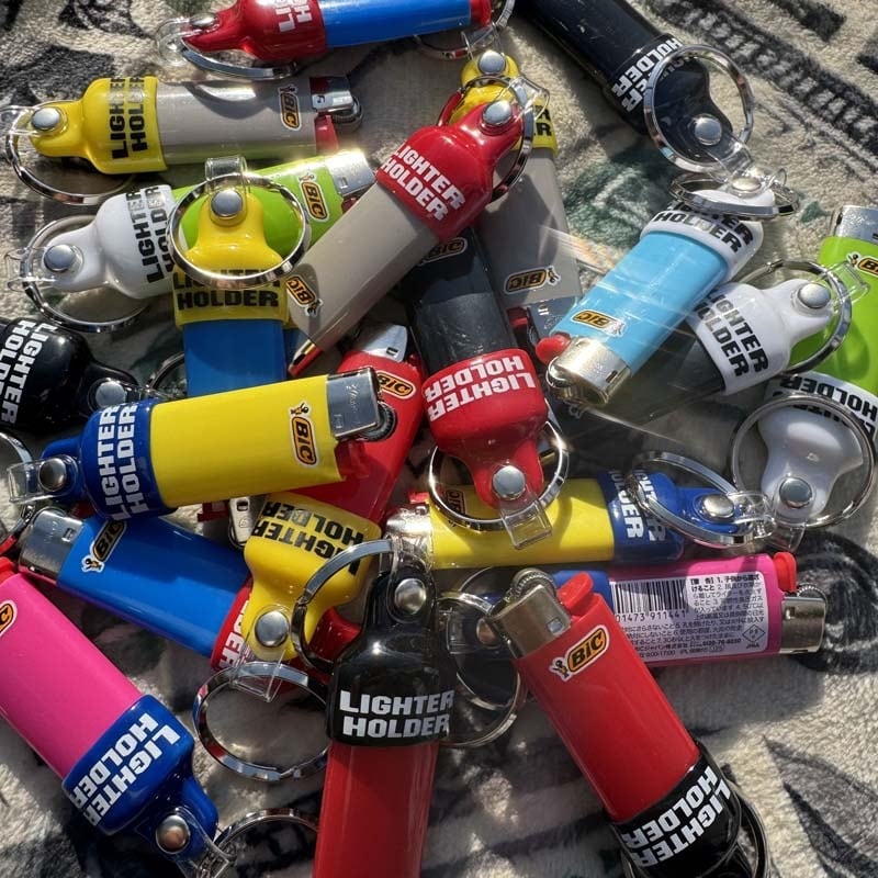 ラバー製のライターキャップにBICのミニライターが付いたキーホルダーが入荷しました!