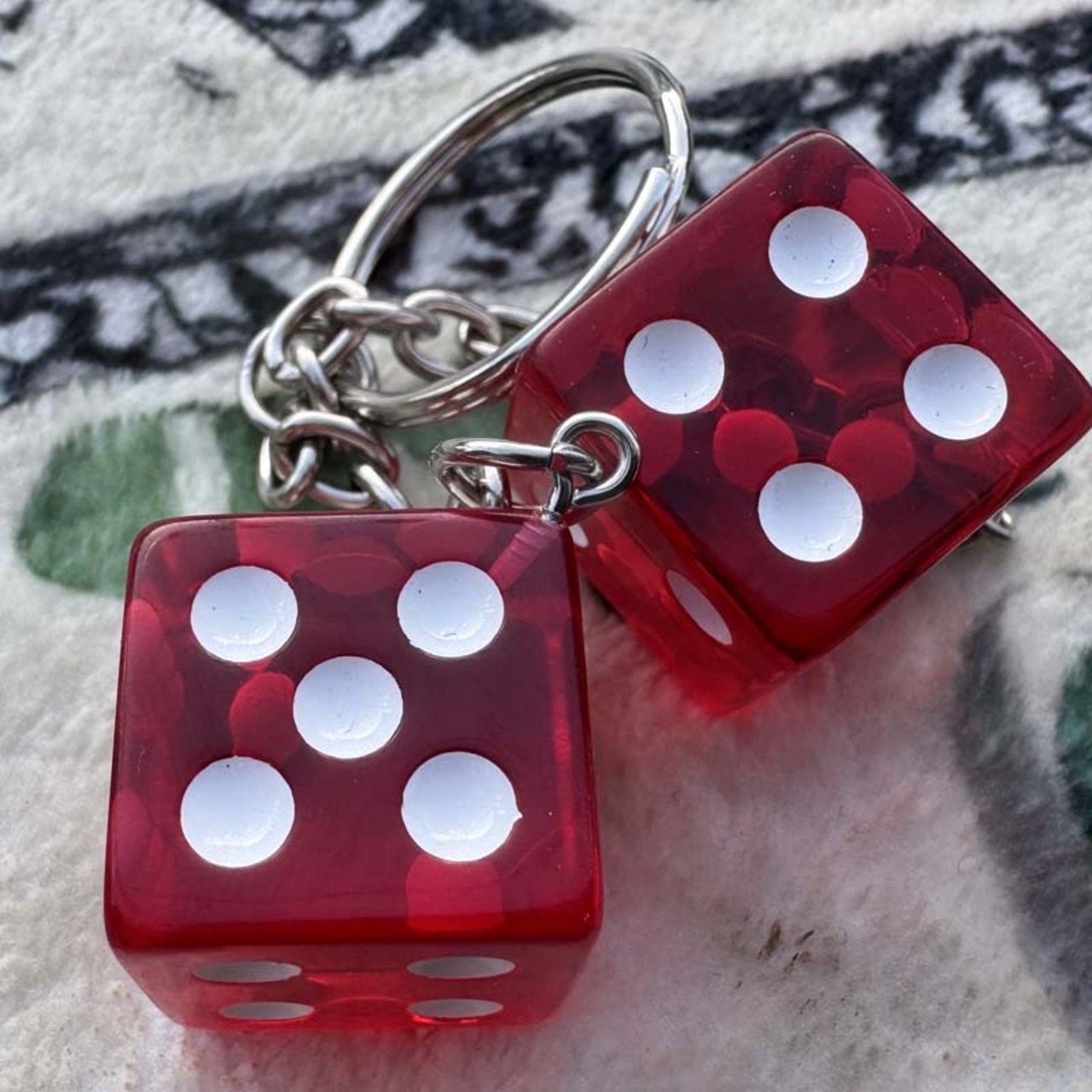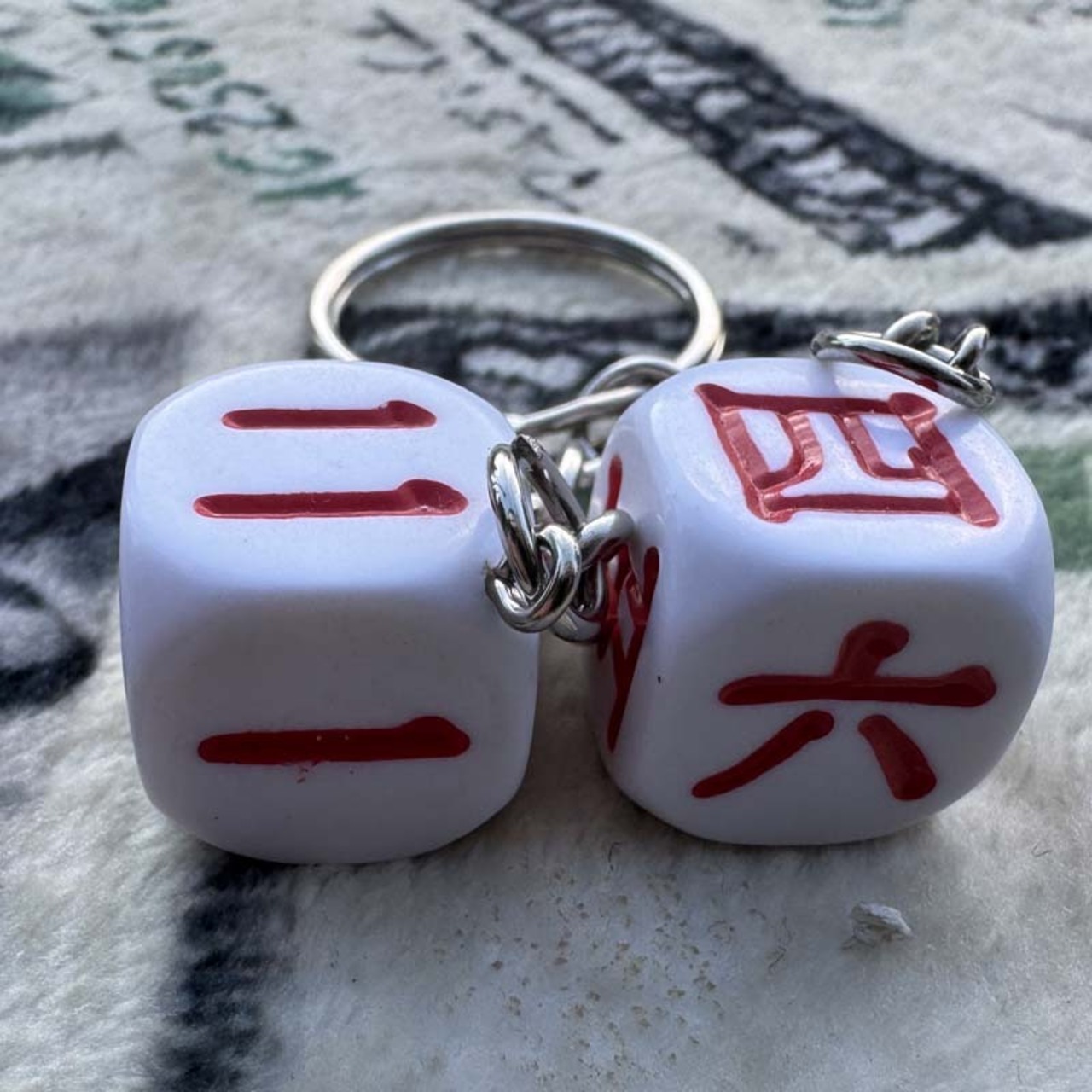 ラスベガスのカジノで使用されるデッドストック物のダイスが2個付いた キーリングが登場!白い漢字版以外はLAS VEGASの刻印が入ります。