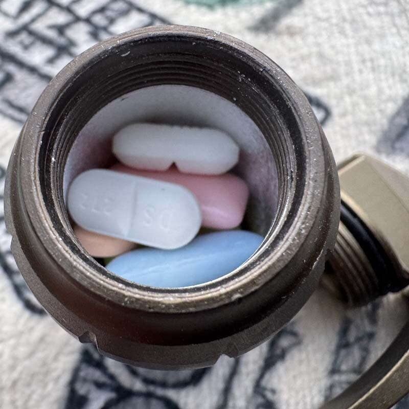 上部をくるくる回す事で手榴弾の中にピルケース 、ストレージボックスが現れるので、常備薬やタバコのフィルターなんかを常備出来ます。