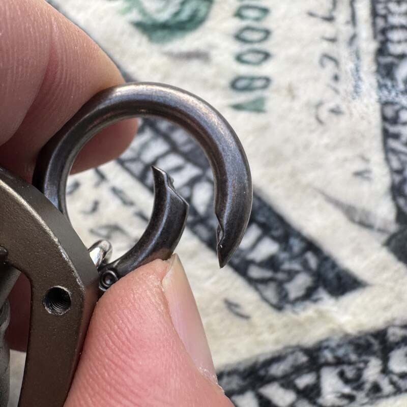 アルミ製の素材感がアーミーテイスト満点ですが、防水構造もあるようでガチ ミリタリー感にもテンション上がります。一見Oリングに見えるパーツが着脱に便利な丸カラビナを採用している点も機能美ですね!