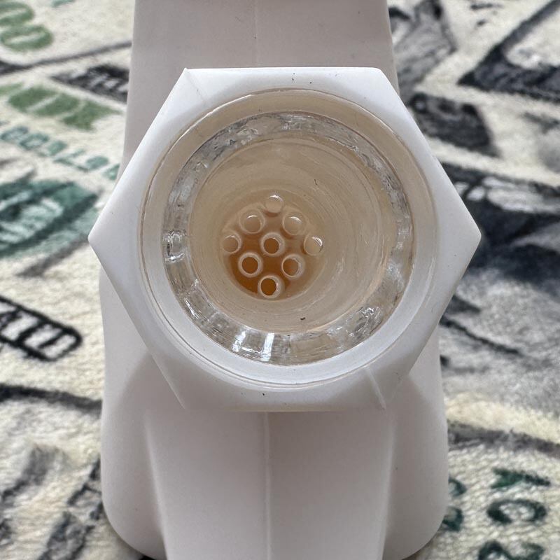 本体の素材はBPAを含まない食品グレードのシリコンパイプになります、火皿は耐熱仕様のガラス製となり底にはスクリーン(細かい穴)加工が施されています。