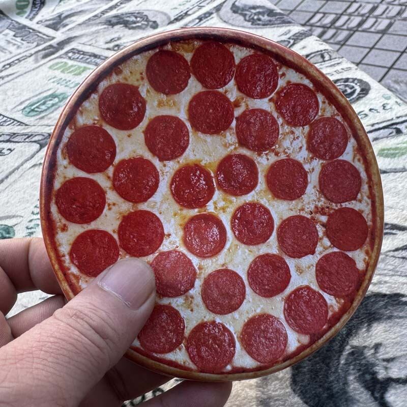 ピザ型のフリスビーが登場w この手のリアルなデジタルプリント物に弱い店主、見かけるとちょいちょい仕入れちゃいますw