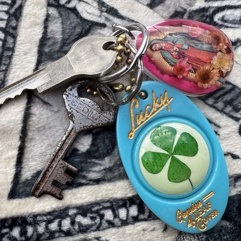 ラッキーアイテムとして、世界中で老若男女から愛される本物の4つ葉のクローバーが入ったラッキーチャームキーホルダーが登場!
