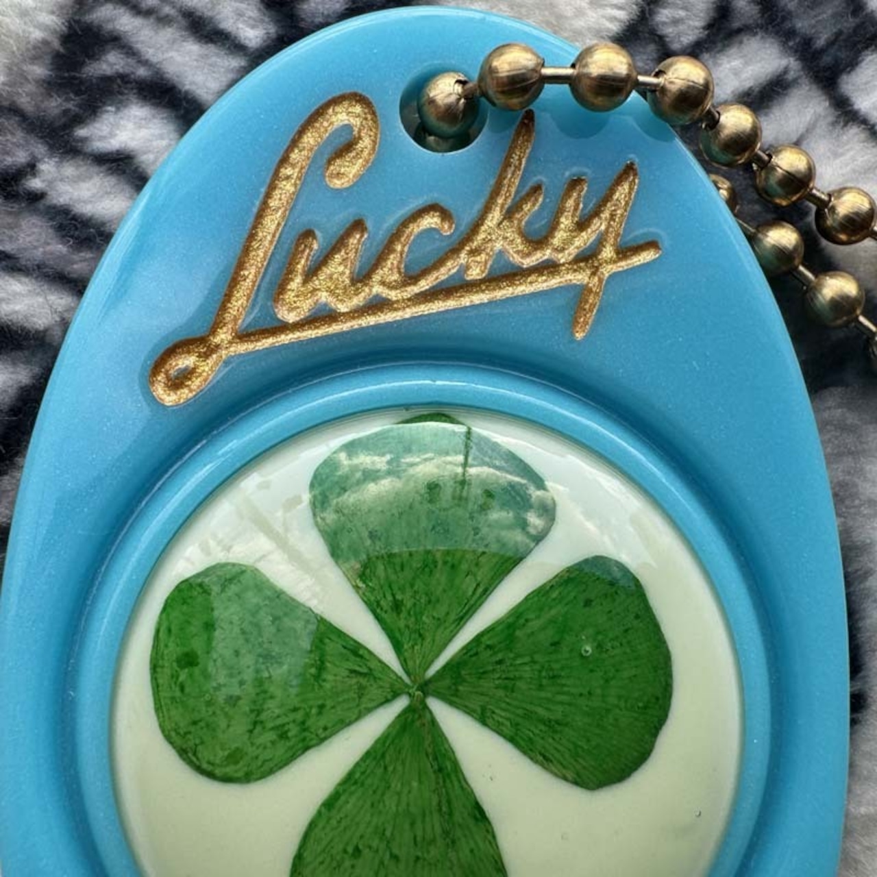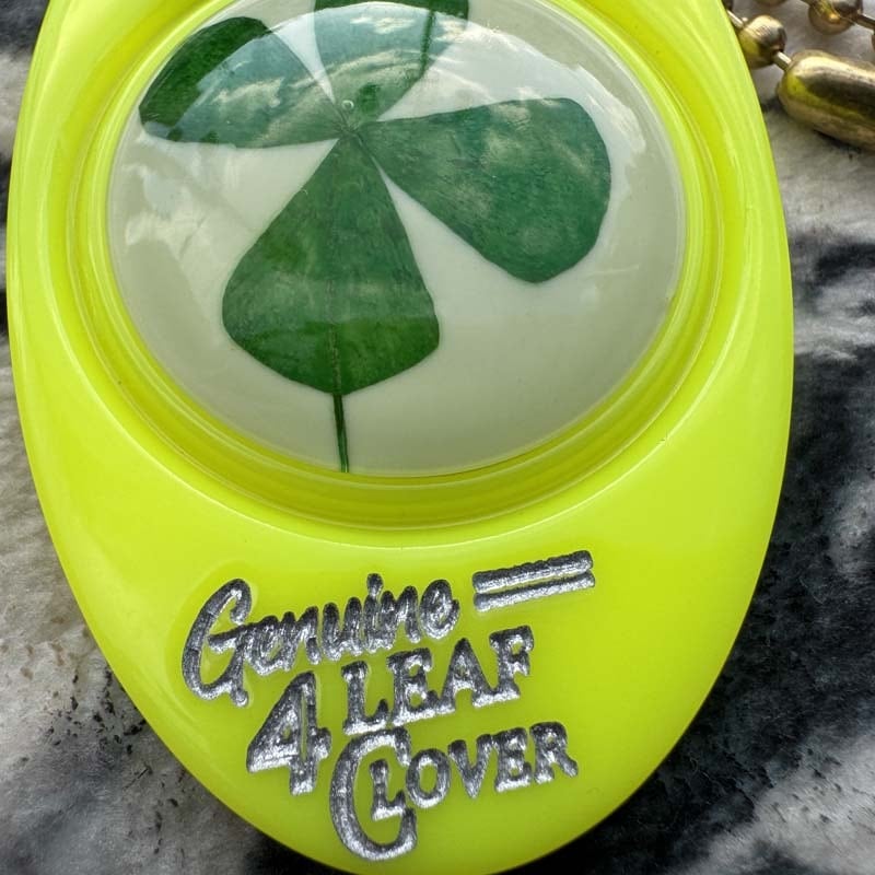 本物の4つ葉のクローバーを樹脂加工しておりますので葉の形状など製品ごとにばらつきがございますが 正に1点物の証です!