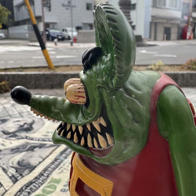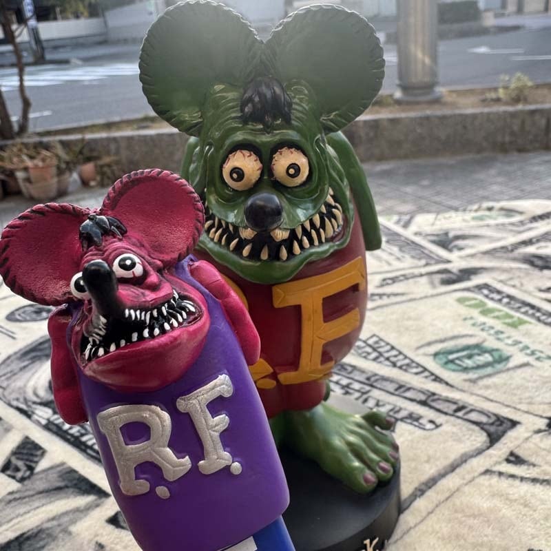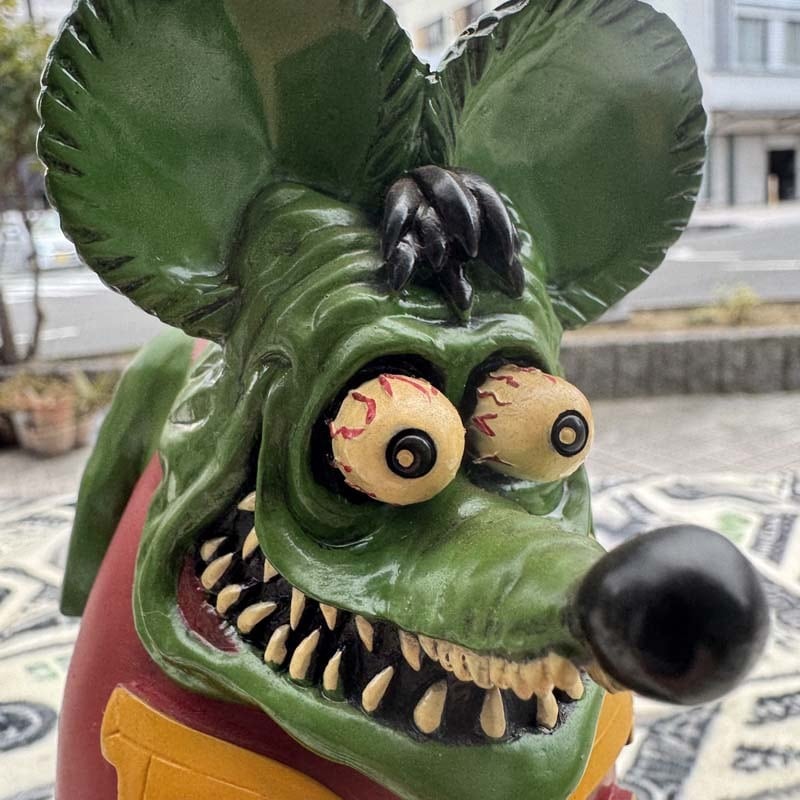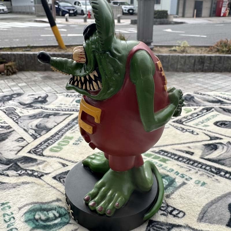 カスタムビルダーの第一人者 Ed Big Daddy Rothこと、エド・ロスが生んだ人気キャラクターRat Finkの首振り人形です。
