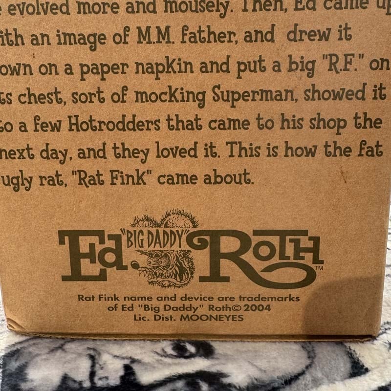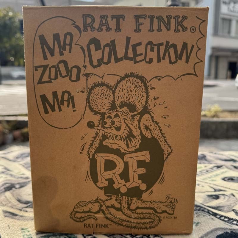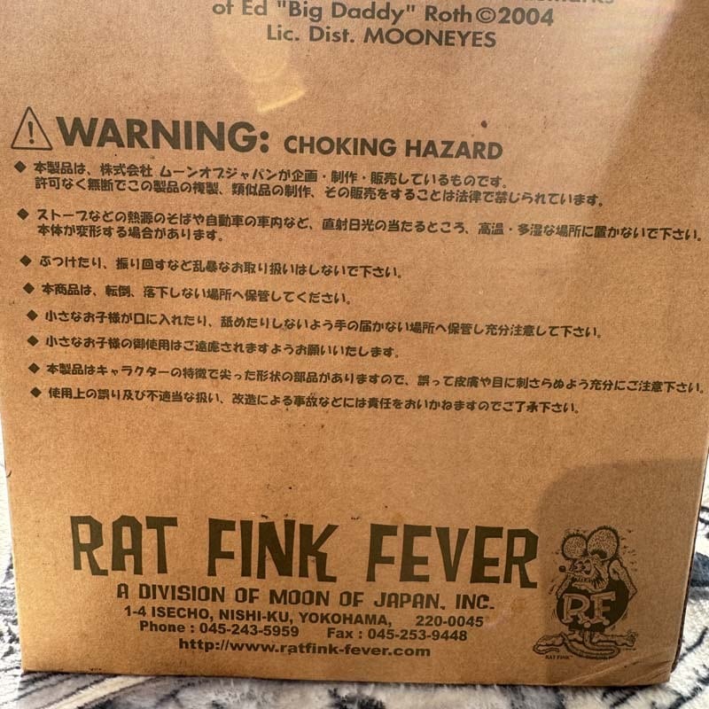 現行品のラットフィンクの首振り人形を調べてみるとFUNKO社の物しか見当たりませんが、こちらは2004年にMOONEYESからリリースされた物となります。その頃に購入した物で、箱から出さずに家にあったほぼDeadstock品となりますが、背面にシールを剝いだような痕跡がある位でその他、気になるところはありません。