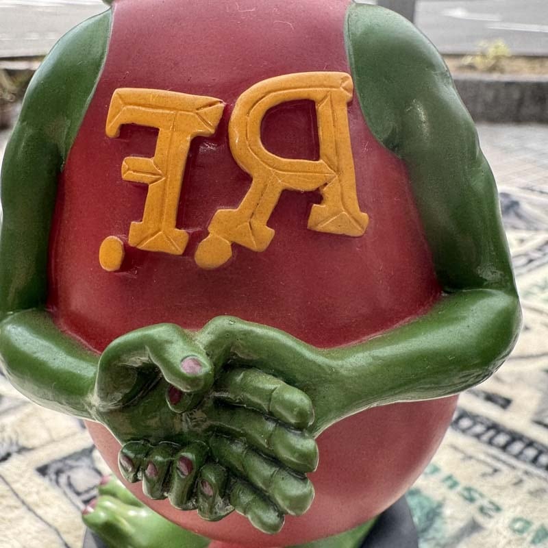 実際目の前で見比べた訳ではありませんが、ネット上で現行品のFUNKO社のRat Finkの首振り人形の写真と記載サイズを見比べてみるとMOONEYESの物の方がドスンと存在感があるように思います。こちらのMOONEYES製では横幅 80 x奥行き 120 x 高さ 173mmに対して、FUNKO社製では横幅 70 x奥行き 70 x 高さ 170mmとなっているのでやっぱり厚みや存在感が大きいみたいで、売るの勿体ない気がしてきてますw