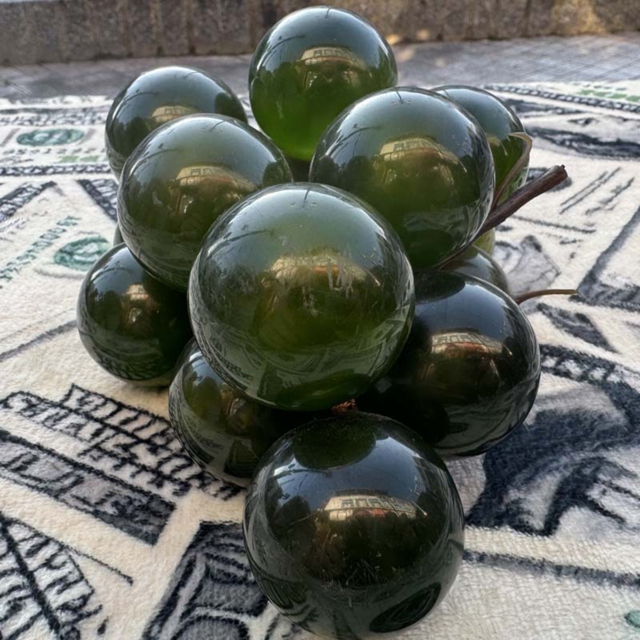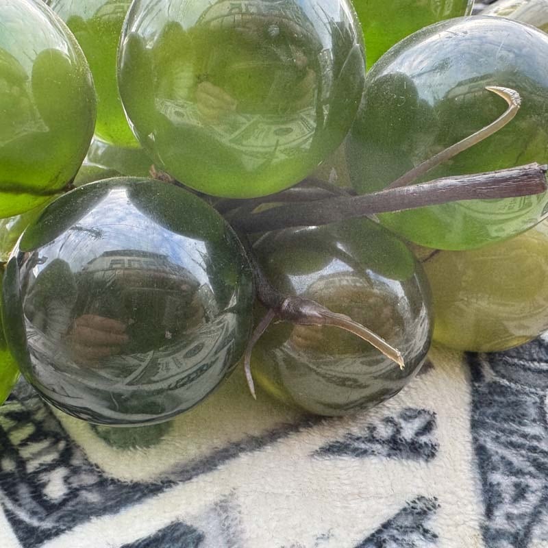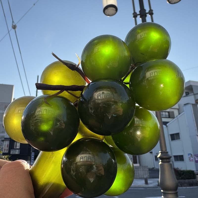 色んな色や形のぶどうのオブジェが存在していて、90年代、00年代頃に古着やビンテージ雑貨のバイヤーだった僕はかなりの数をアメリカで乱獲wしてましたが、枝の部分は流木などの本物の木を使用している物が多く枝の部分までアクリル樹脂(ルーサイト)製なのは結構レアだと思います。