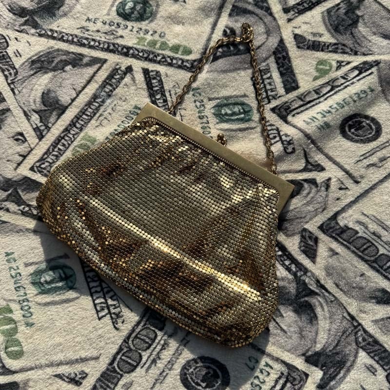 存在その物がまるでジュエリーのようなゴールドの光沢と輝きを放つメタルメッシュバッグで、古そうなタグや ただなら気配に調べてみたら、アメリカの老舗ブランドで 世界最大のメッシュバッグメーカー Whiting & Davis(ホワイティング&デイビス)社の1940年代頃の物と判明!