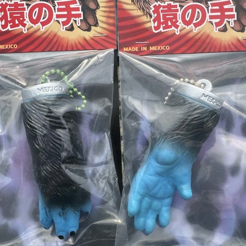 第1便のテスト販売が大好評だったんで、新色の色違いで前回よりカラバリ増やしての再入荷となりましたが、manana outbreakから僕に渡し損ねた青い猿の手が2点出て来ました!