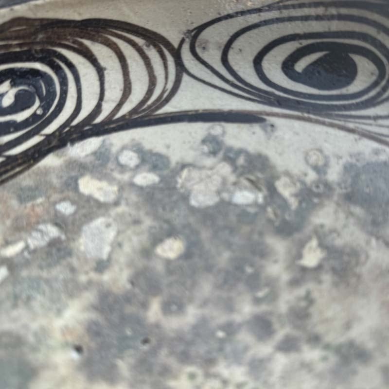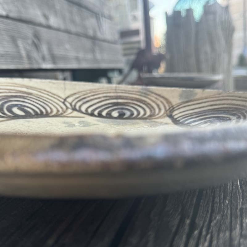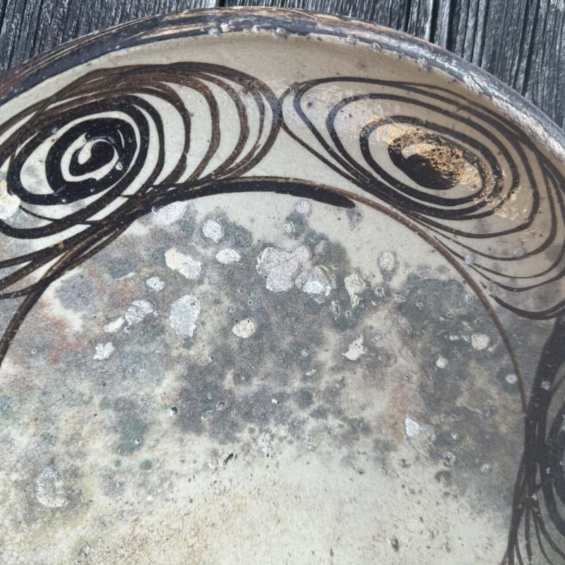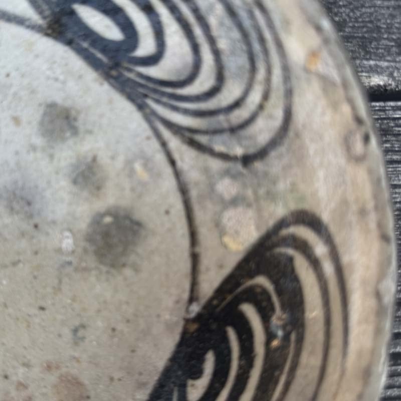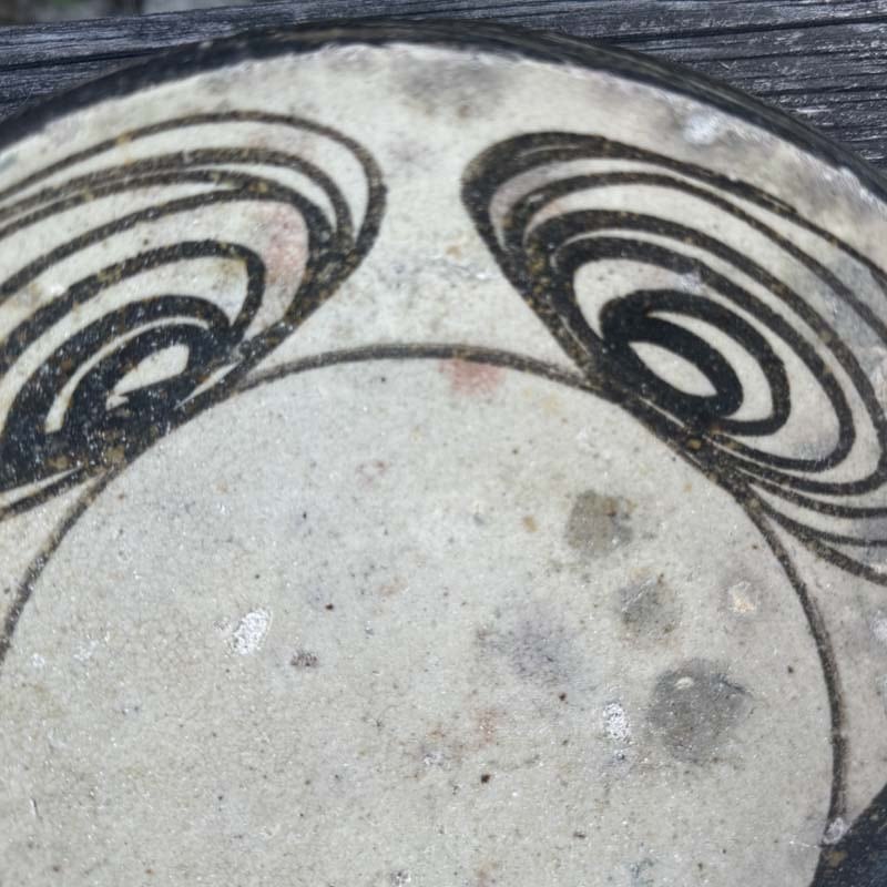 ハイ!馬の目皿に戻って、江戸時代後期に瀬戸・美濃地方で製作された盛りつけ用の皿。渦巻き文を周りに配置する特徴から馬目皿と呼ばれた。幕末から明治初期の物と思われます。馬の目皿の文様は、火難の厄除けであったり、有り余る生命の豊かさを象徴したものらしいとの意味合いも!