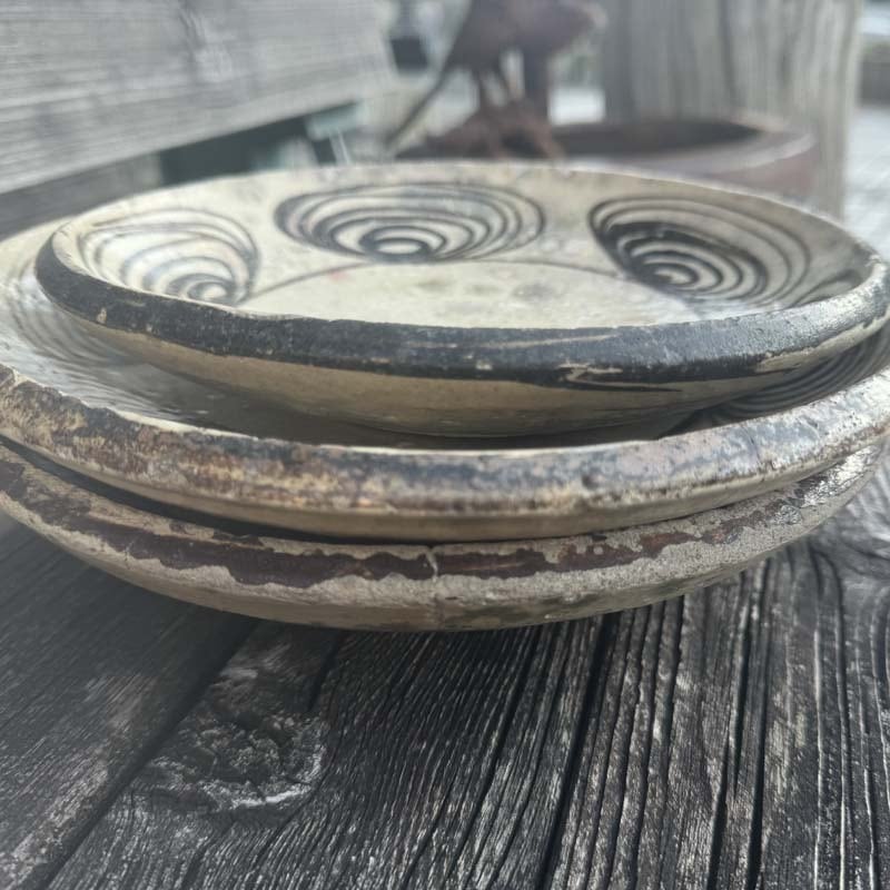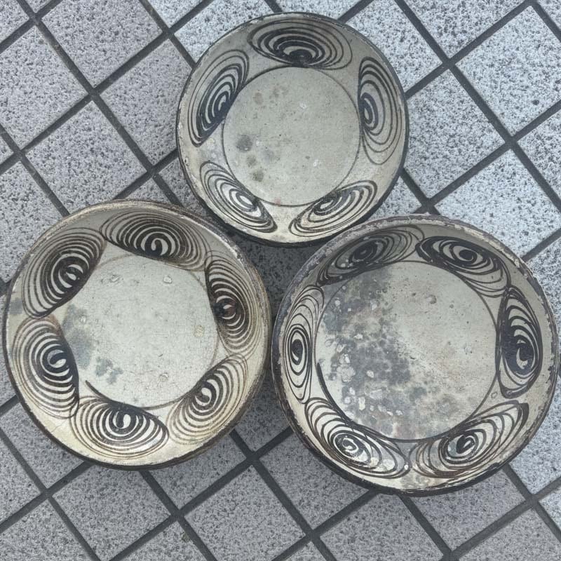 mananaとしては珍しく、和物の骨董品のご紹介です。幕末から明治初期の古瀬戸 馬の目皿3枚セット!