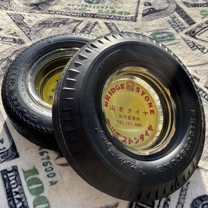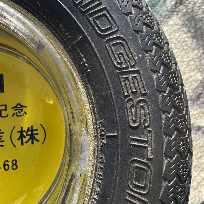 manana outbreakシリーズより、1970年代 Deadstock 昭和レトロなビンテージ 物の タイヤ型のノベルティー灰皿。ブリヂストンのRD-202 STEELラジアル型タイヤ。