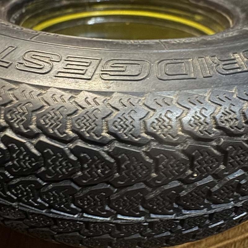 RD-202 STEELはブリヂストンの初期のスチールラジアルタイヤの名称で、1970年代に主流となったラジアル構造を採用しており、現代的なタイヤの形をしています。