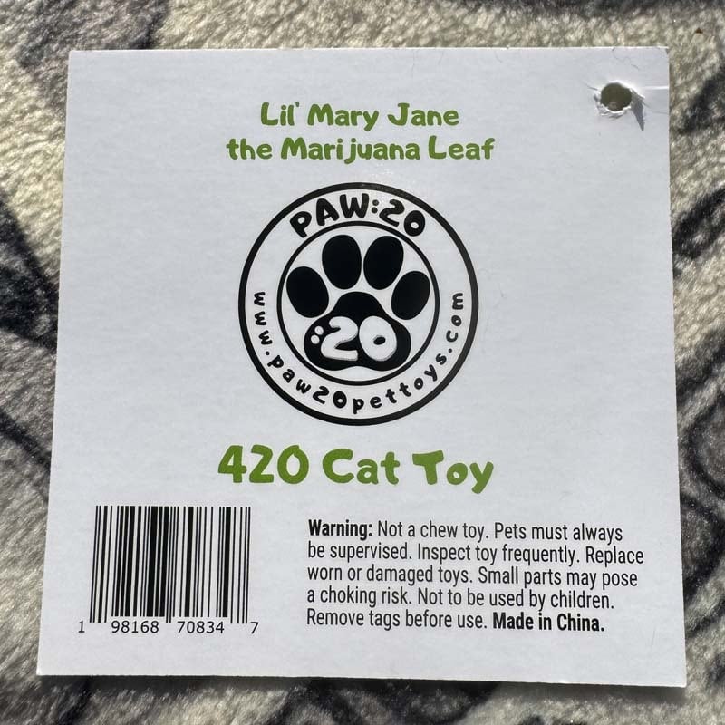 聖なる緑の植物 リーフ型のぬいぐるみ、猫用の オモチャ Sサイズ キャットニップ、マタタビ、Hello My Name is lil Mary Jane、リル・メリー・ジェーン、marijuana、マリファナ)、PAW 420 WEED CAT TOY